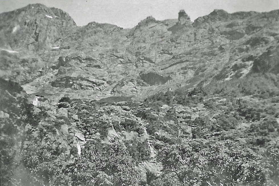 We left the Esperance Hut (which had not been used since March 1932. We were therefore the first party over the Grave-Talbot in the season) at 5:50 am for Milford. It was a great morning. The Esperance track is rapidly becoming overgrown, but we made good time down to the Gulliver River, and reached the camp there at 6:45 am.