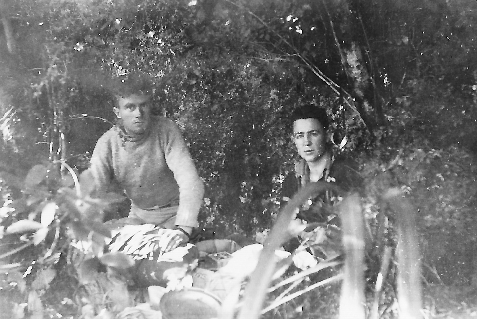 Here a veritable swampy jungle greeted us, and through it we forced our weary way, falling into holes filled with mud and smashing through brambles barring our way, till we reached a deer track where we threw ourselves on the ground, stonkered.