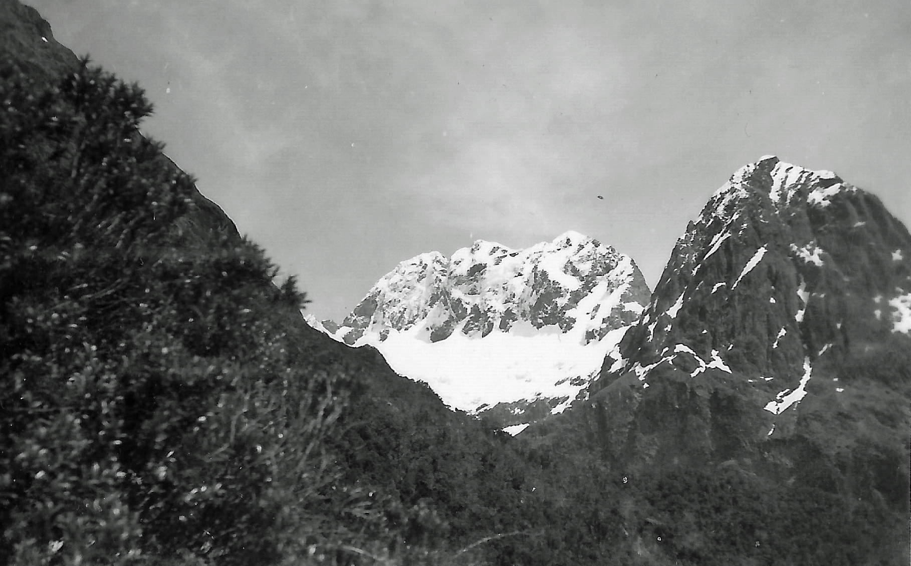 From the saddle we looked down into the hanging valley which we had looked at from the Milford side several years ago, and into which Charlie Clark and Jack Braithwaite hoped to climb if we did not get Underwood.