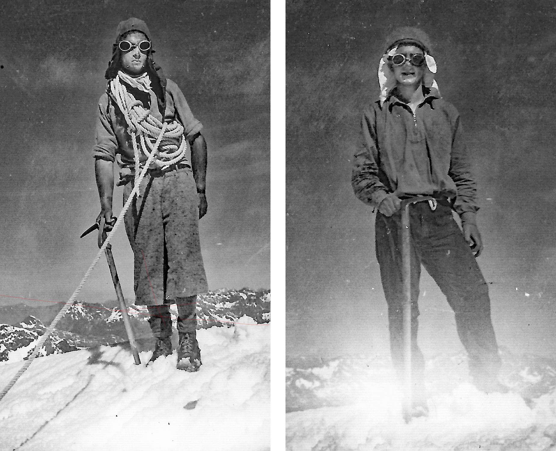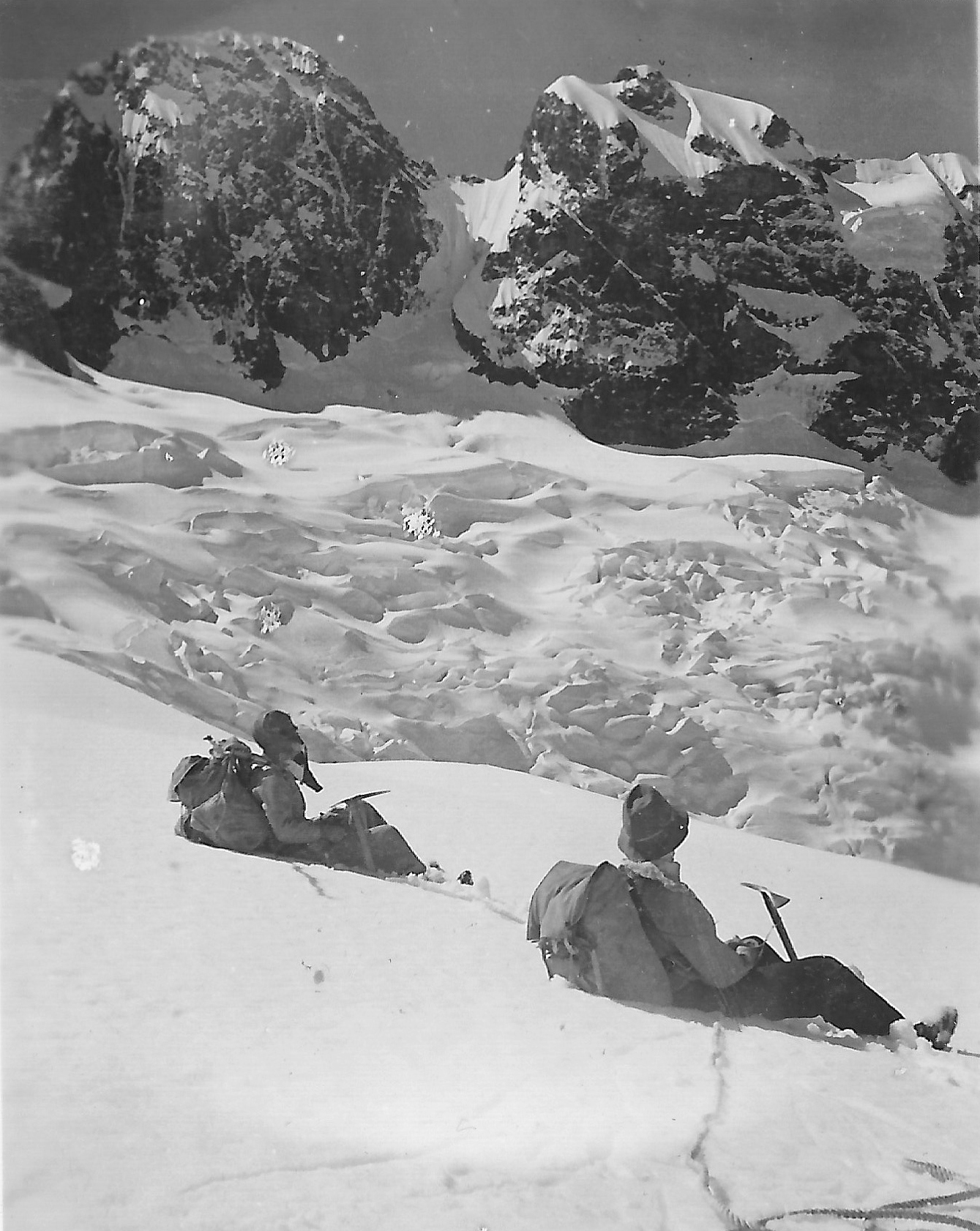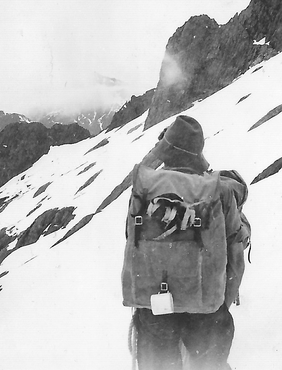 The snow was in soft condition in front of us but we could see the route taken by [Alex] Dickie and [Jim] Speden clearly beneath Taiaroa,