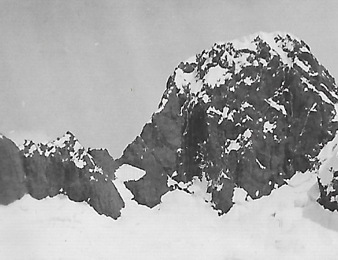 To the left, Underwood – glistening in the sun, with closer and to the right the great rock peak still unnamed