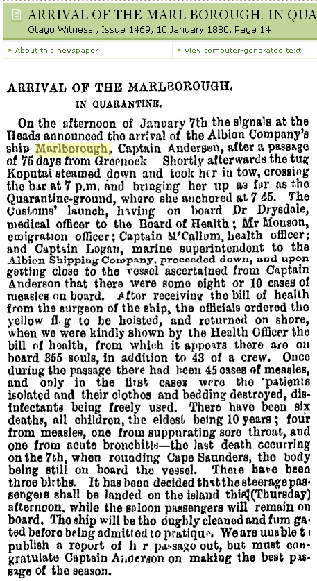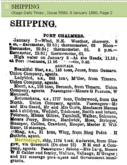 arrived at Port Chlamers, NZ, on 7 January 1880