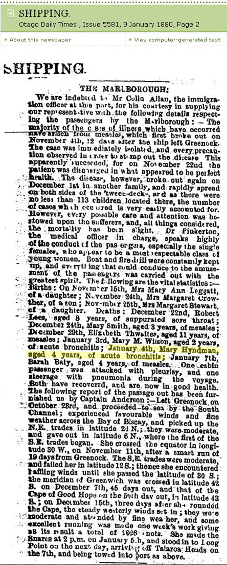 | HYNDMAN | Eliza | 7 | Daughter | ||||||