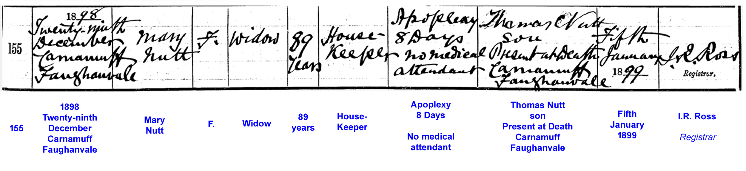 Died: 29 December 1898 - Carnamuff, County Londonderry, Northern Ireland