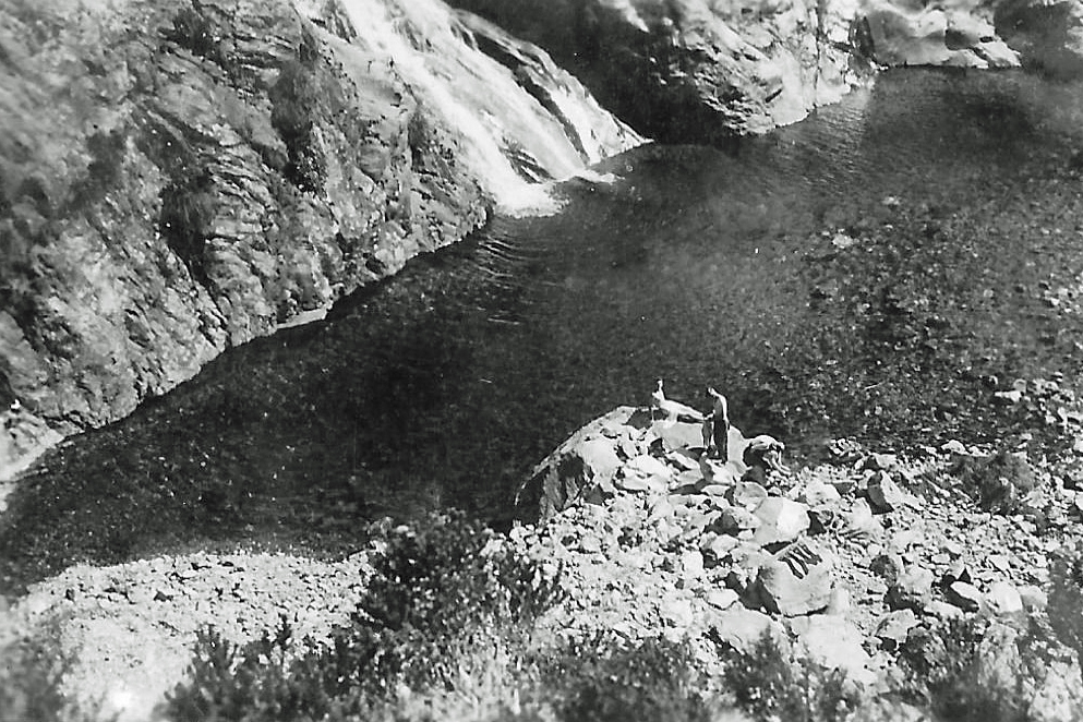 The up-and-down track was followed through the bush until at 10:15 am, Falls Creek was reached, where we rested for a while.