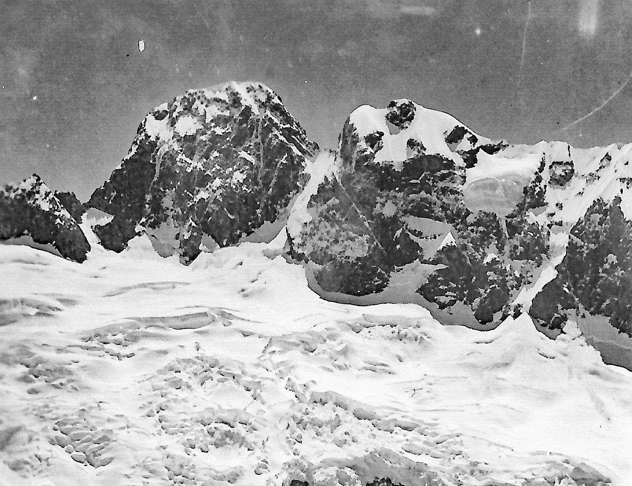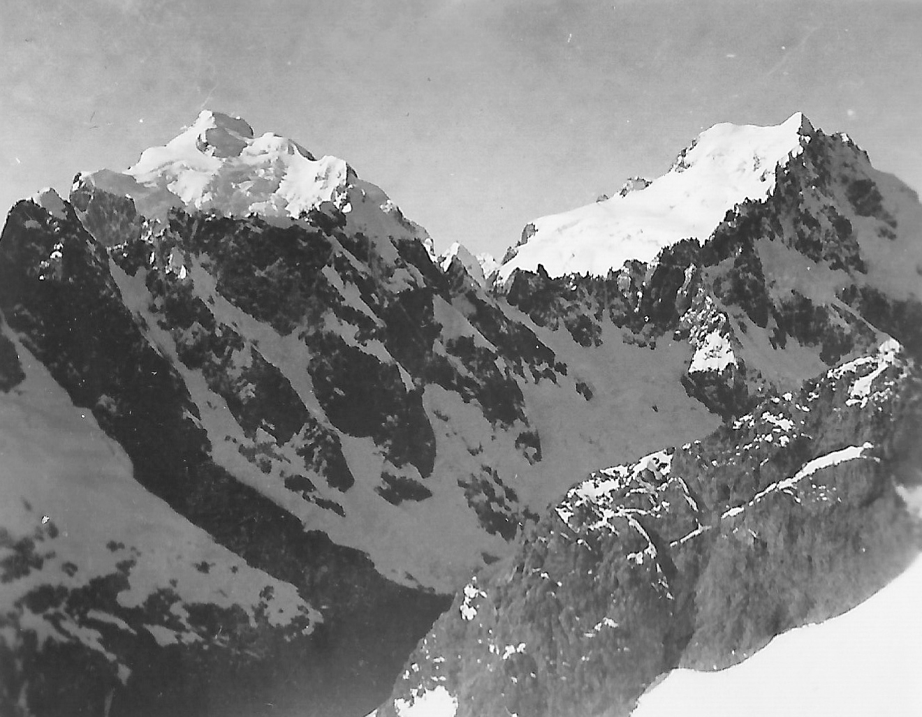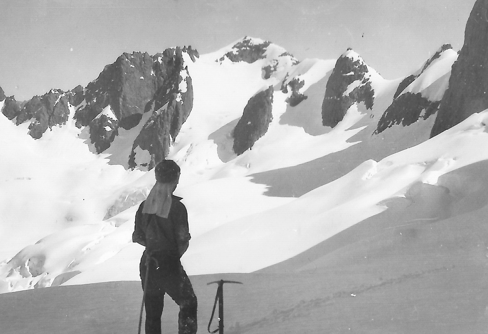 The snow was in soft condition in front of us but we could see the route taken by [Alex] Dickie and [Jim] Speden clearly beneath Taiaroa,