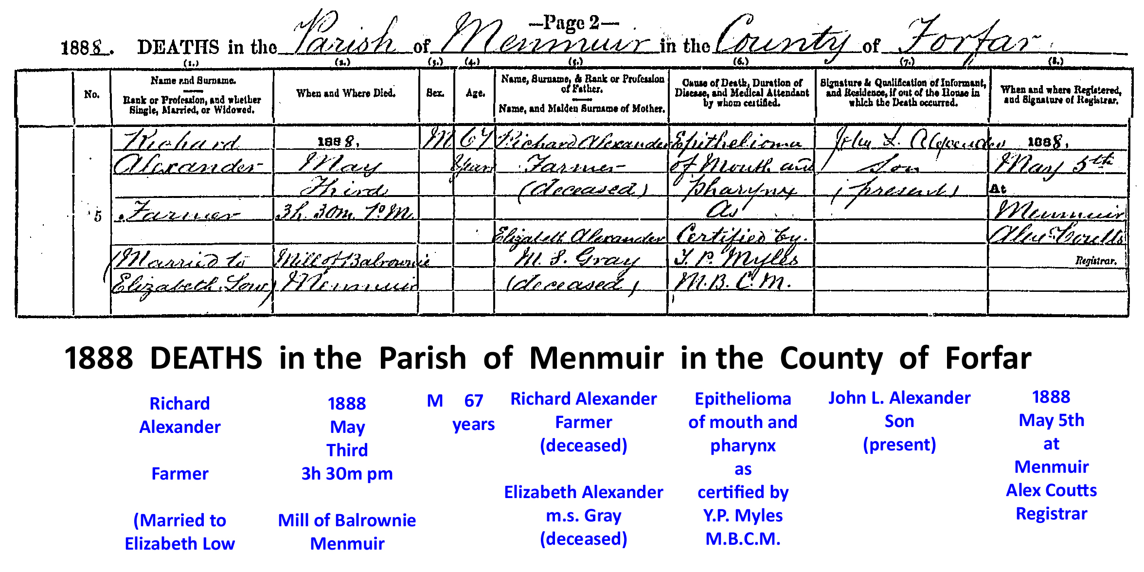 3 May 1888 - Mill of Balrownie, Angus, Scotland