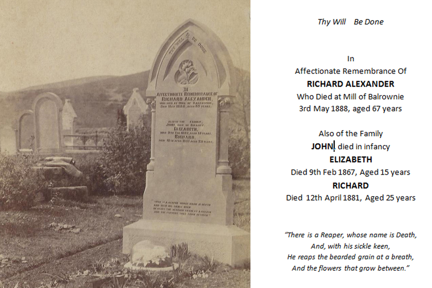 Buried: 9 May 1888 - Edzell Churchyard, Angus, Scotland