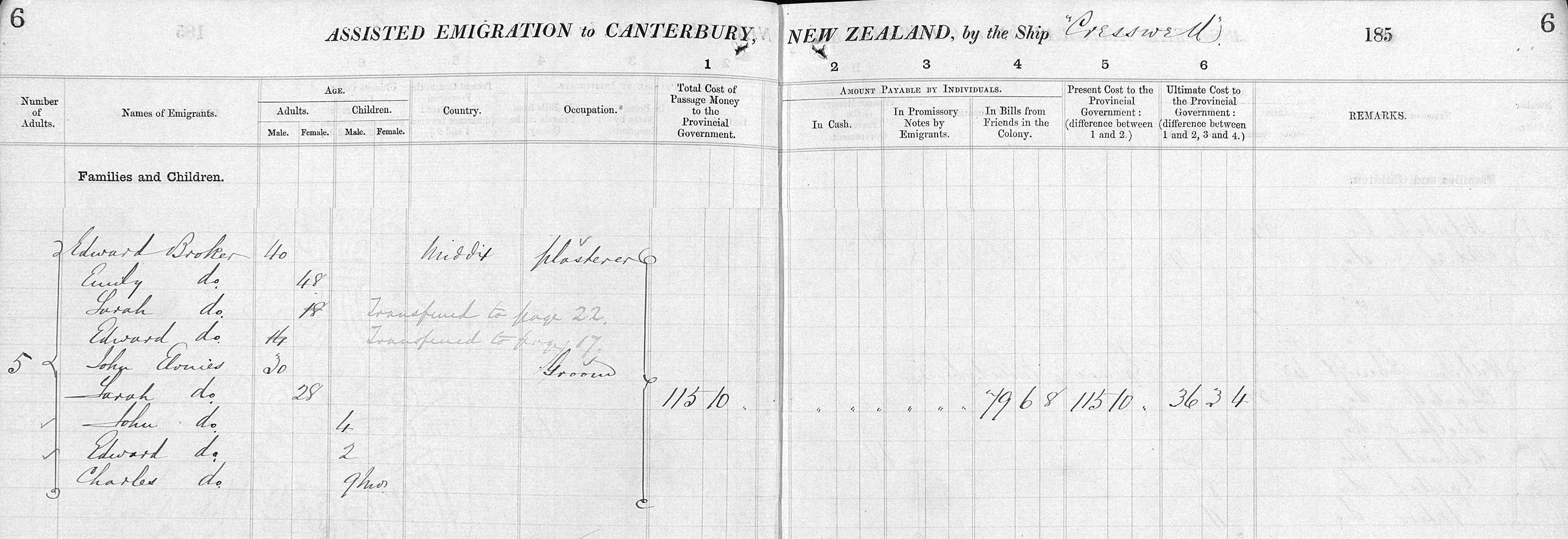 Assisted Emigration to CANTERBURY by the Ship CRESSWELL