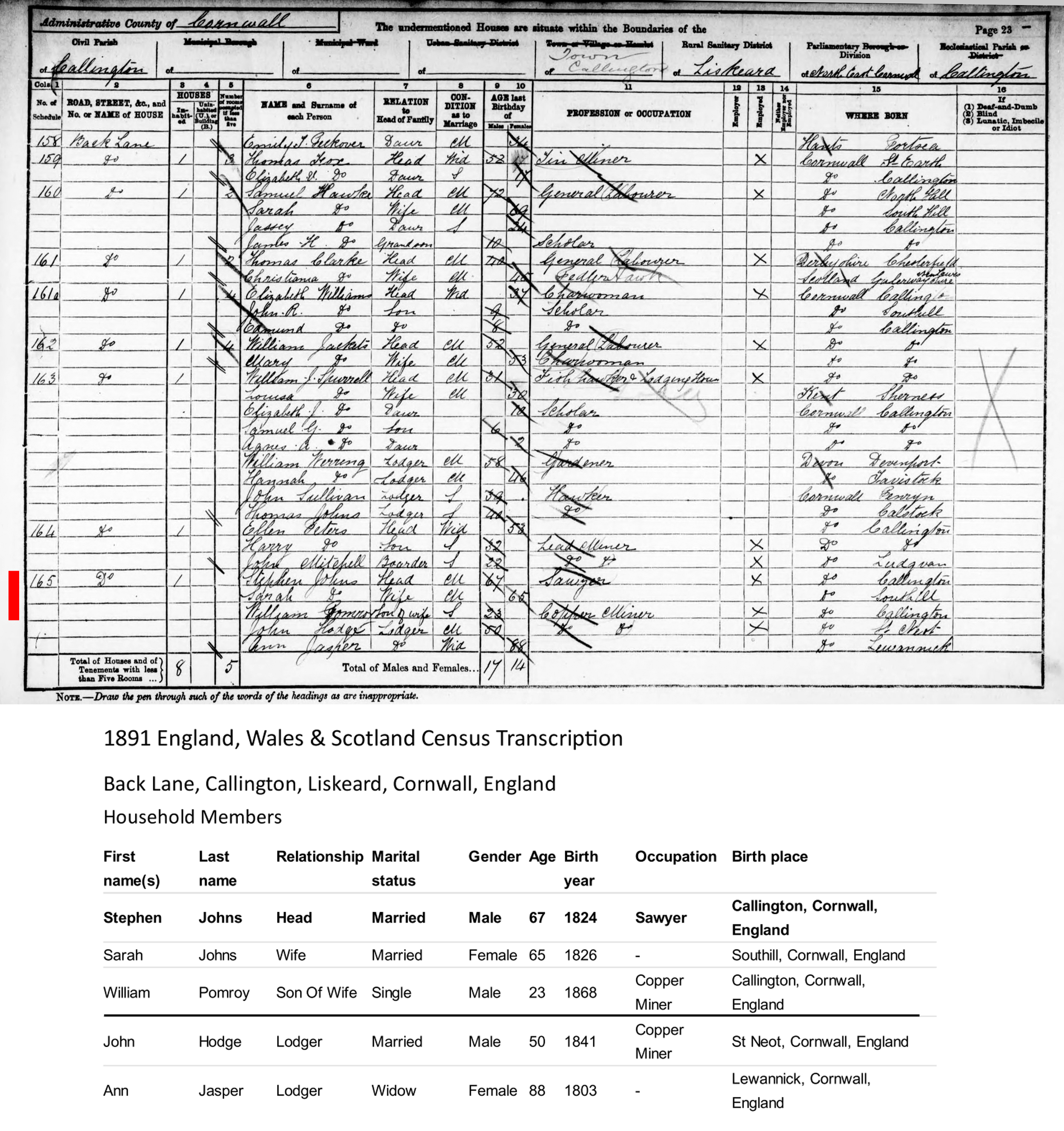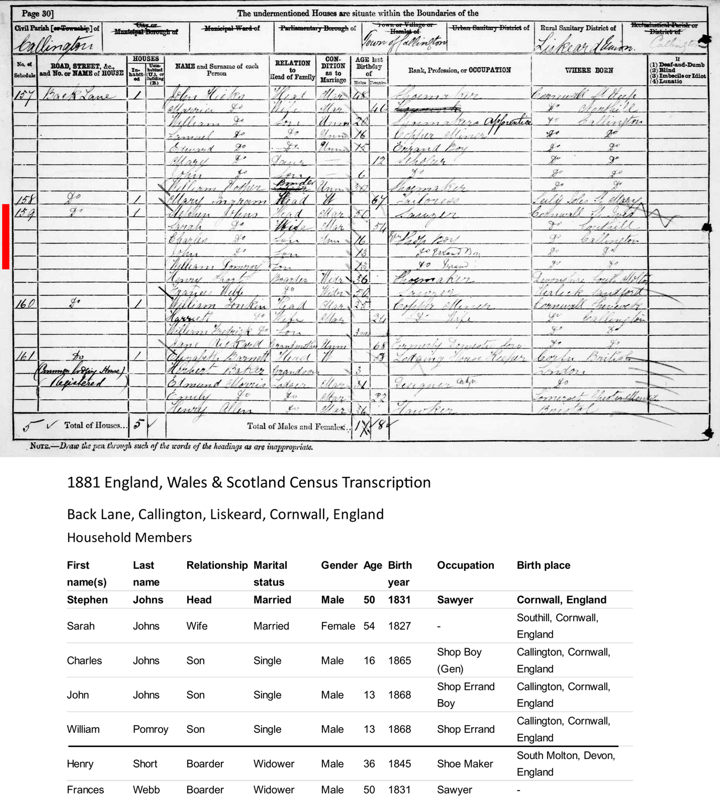 Married (possibly) (2nd): 1878-1881 - Cornwall, UK