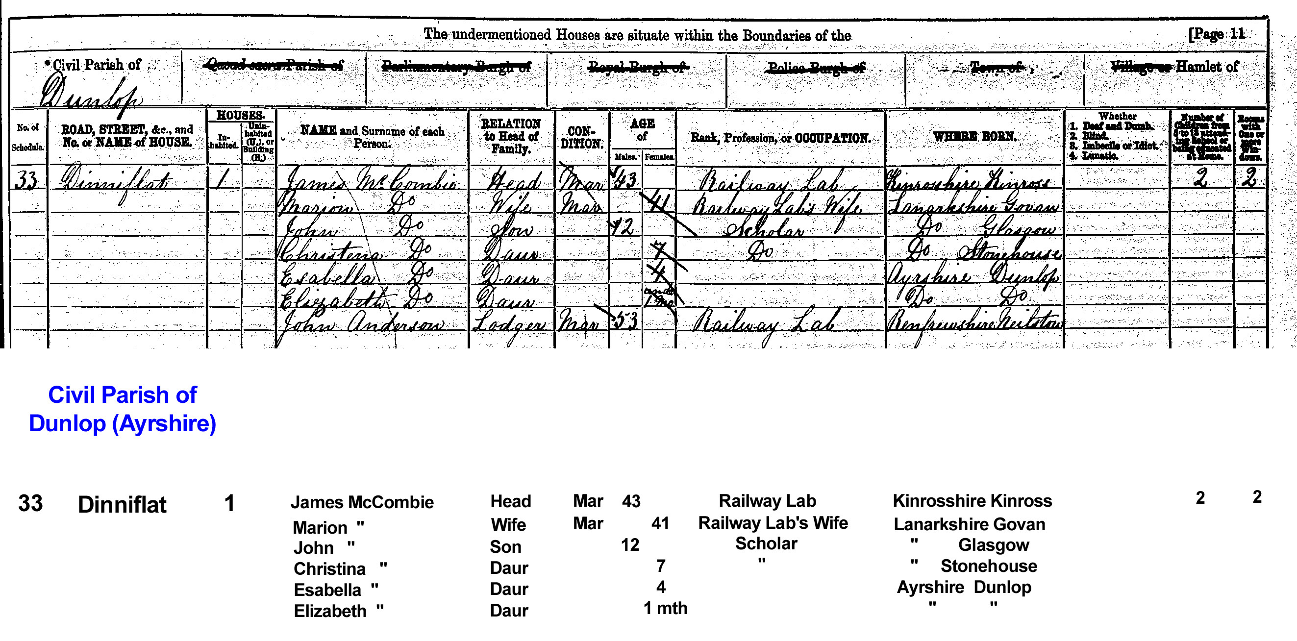1871 at Dinniflat/Duniflat, Dunlop, Ayrshire