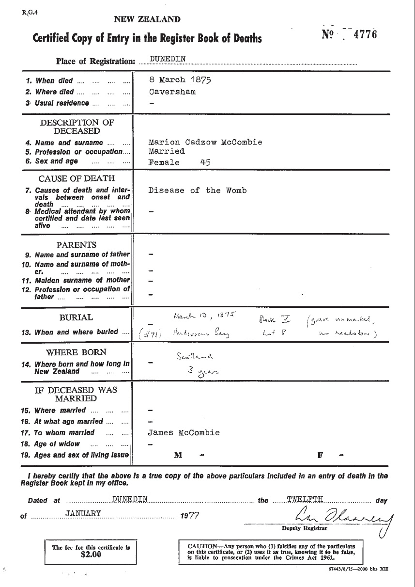 8 March 1875 - Caversham, Dunedin, NZ (cert)