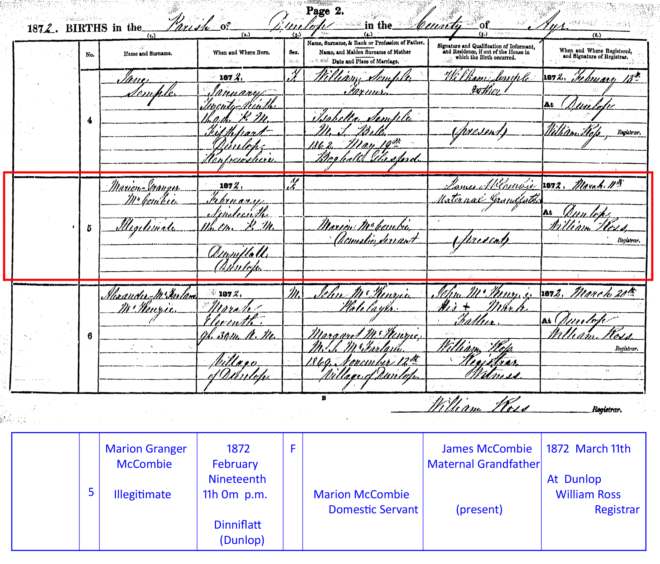 Marion Granger McCOMBIE (b: 19/2/1872) {natural child of 1st daughter, Marion}