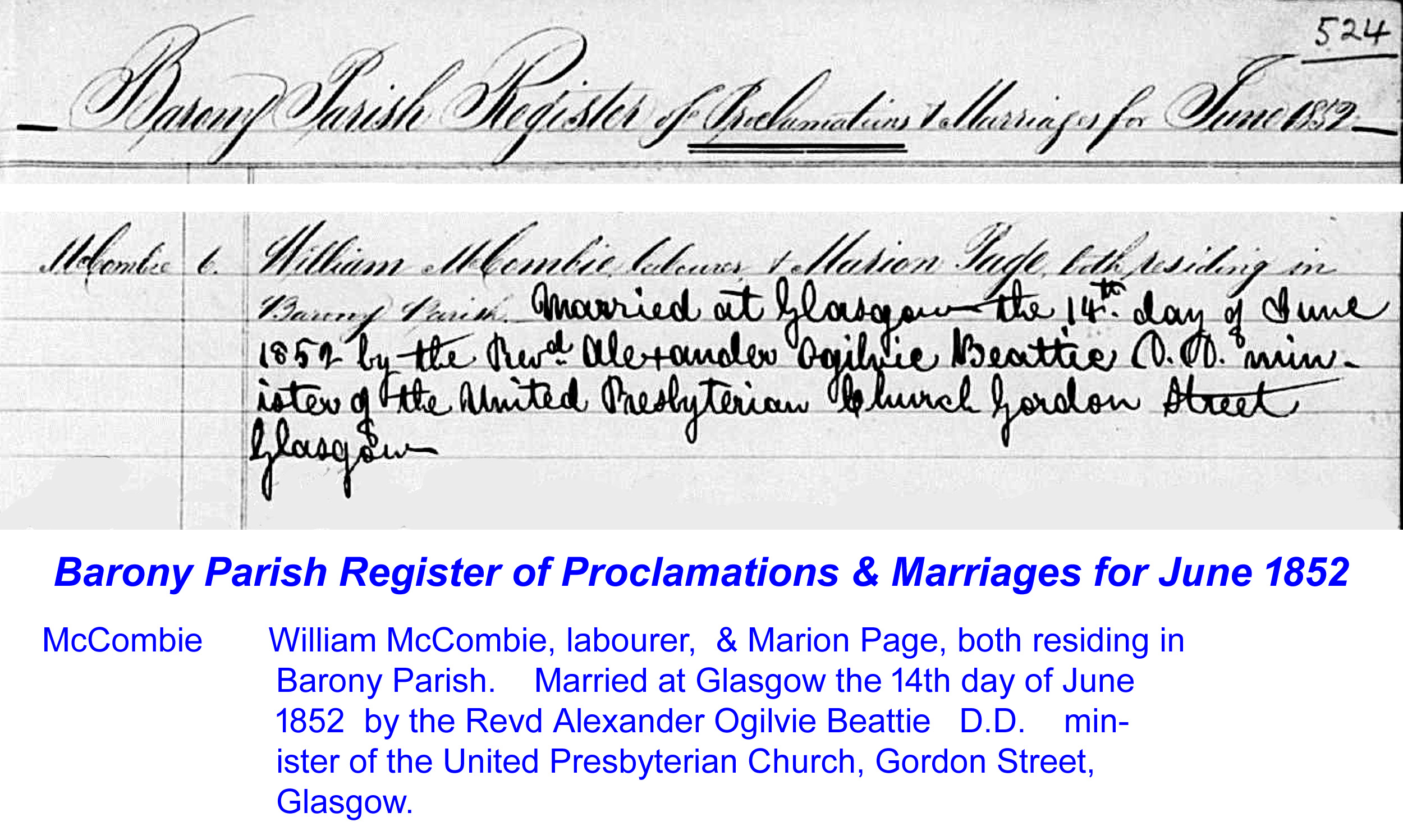 14 June 1852 - United Presbyterian Church, (was) 72 Gordon St, Barony, Glasgow