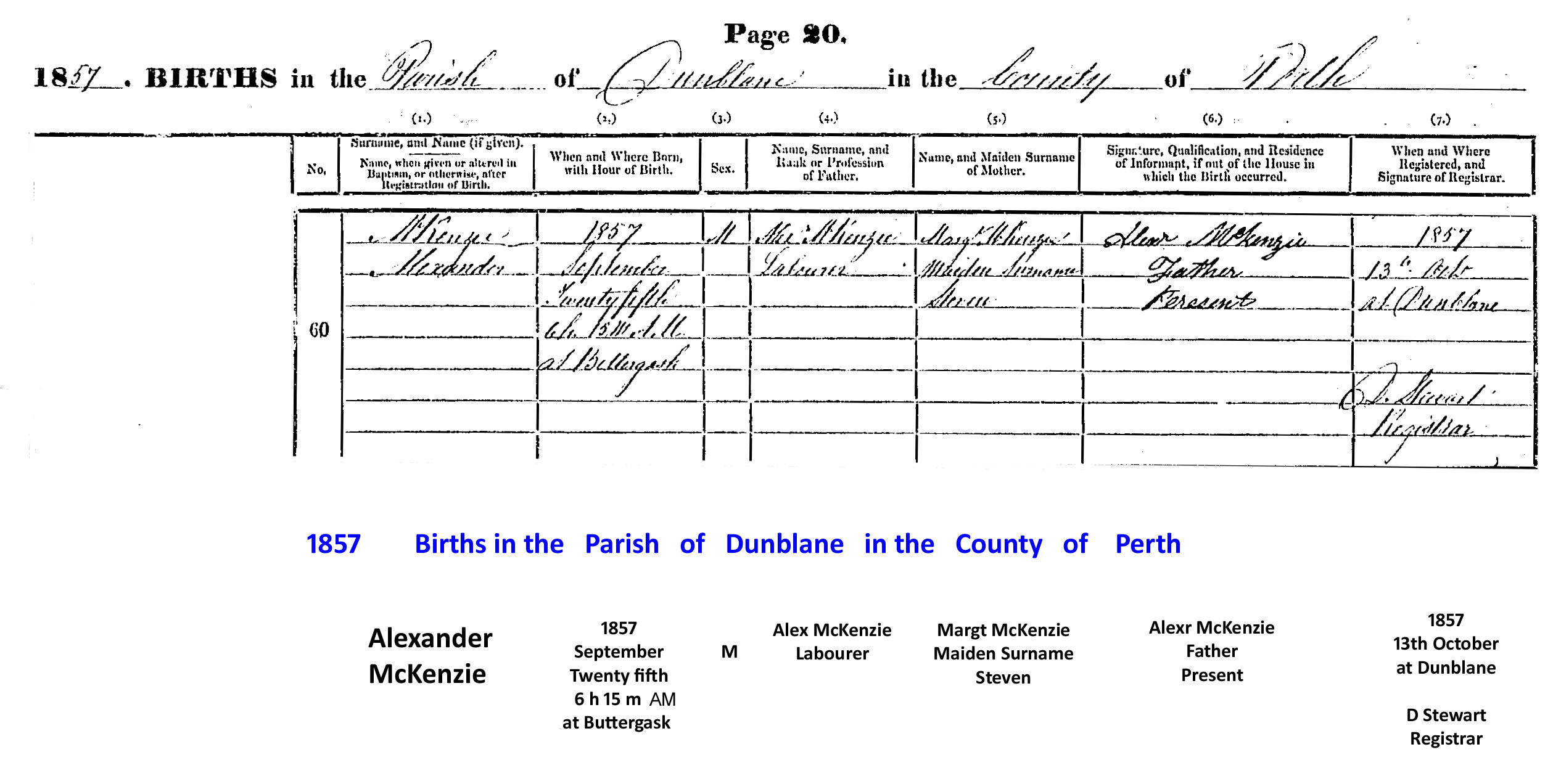 25 September 1857 - Buttergask (near Blackford), Perthshire,Scotland
