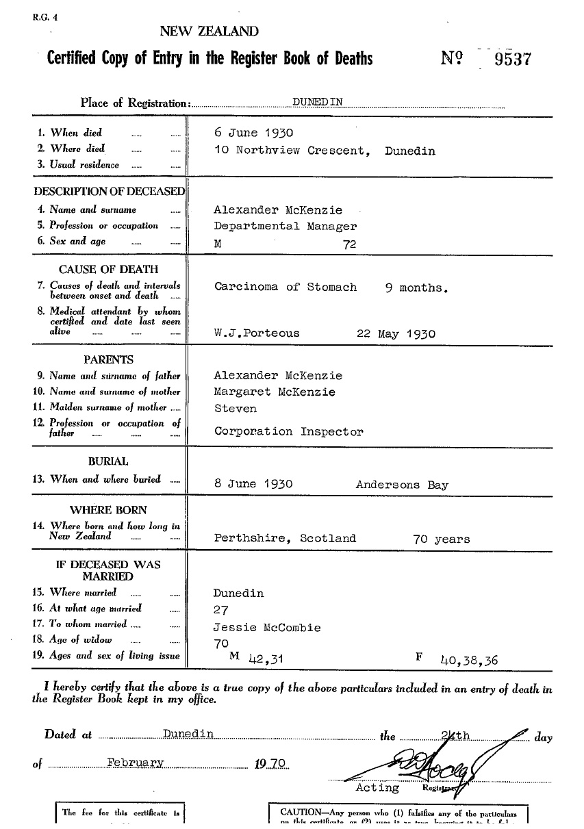 Alexander Steven ("Mac") McKENZIE (b: 2/10/1897; d: 25/6/1978)