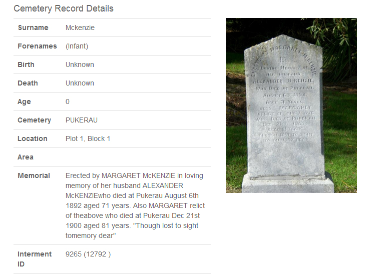 Buried in Dunedin's Andersons Bay - block 113, plot 65