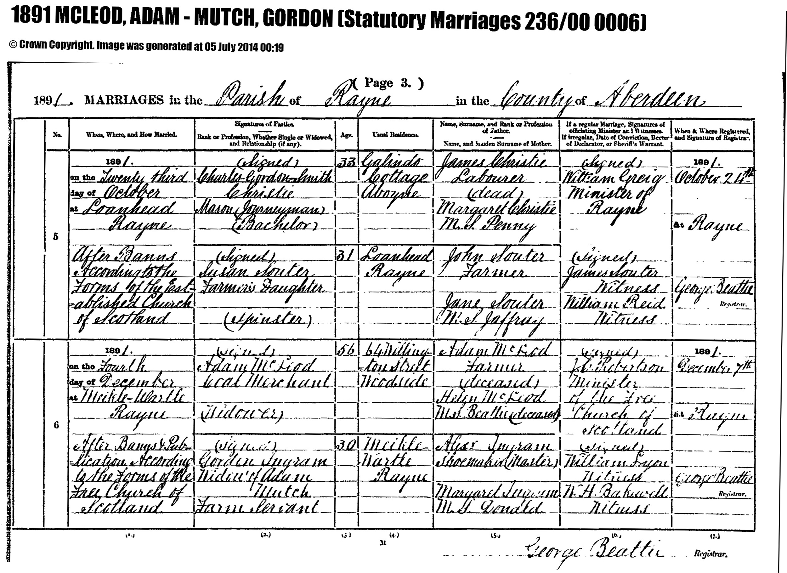 4 December 1891 - Meikle Wartle, Aberdeenshire, Scotland (cert)