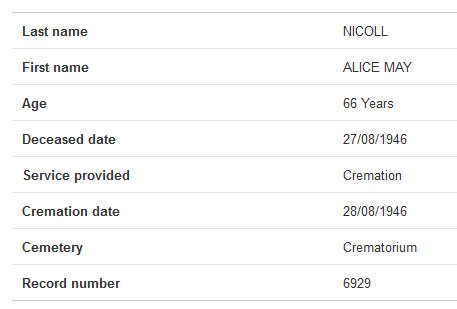 Died: 27 August 1946 - Wellington, NZ (cert)
