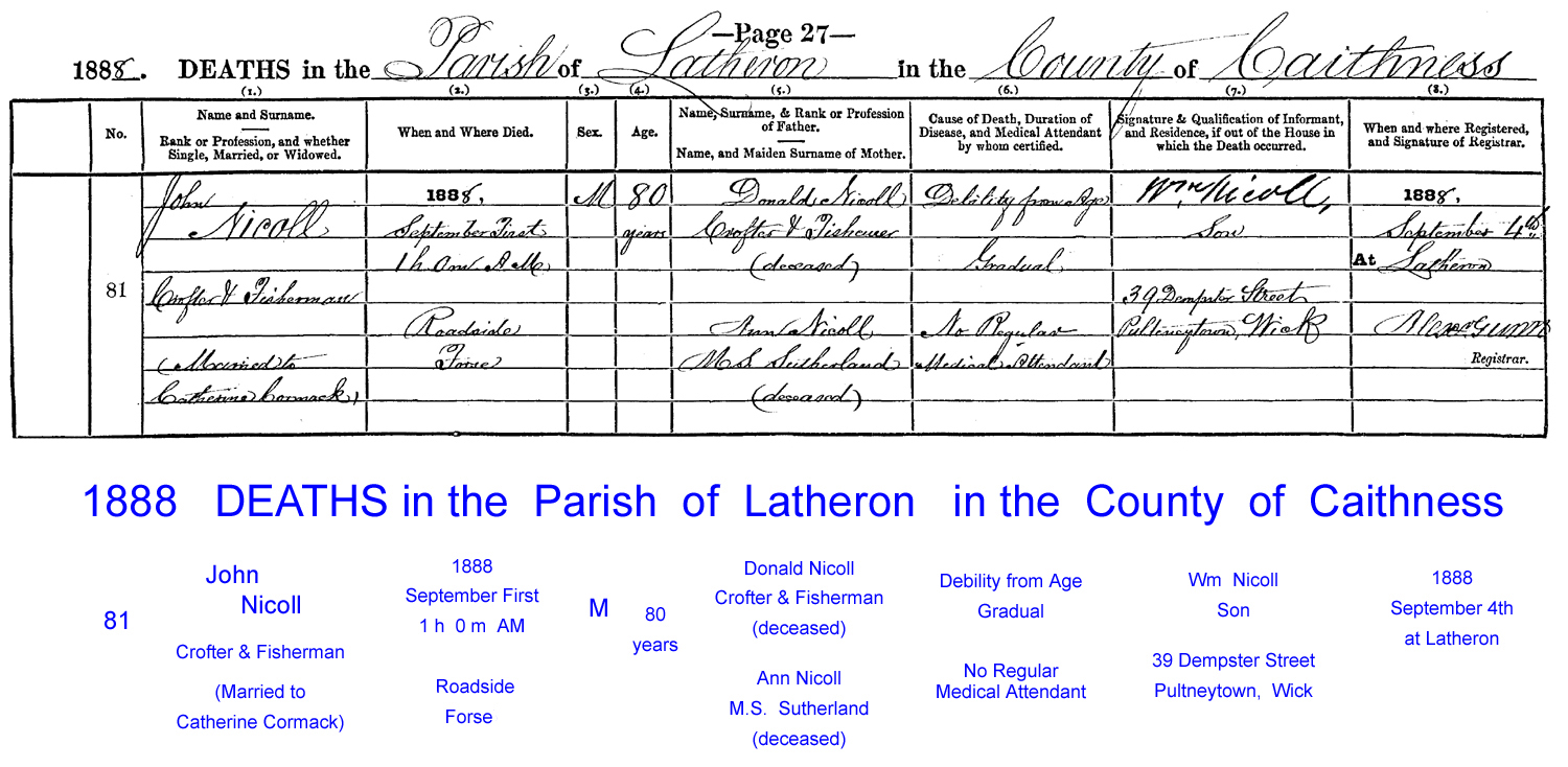 1 September 1888 - Forse, Scotland (cert)