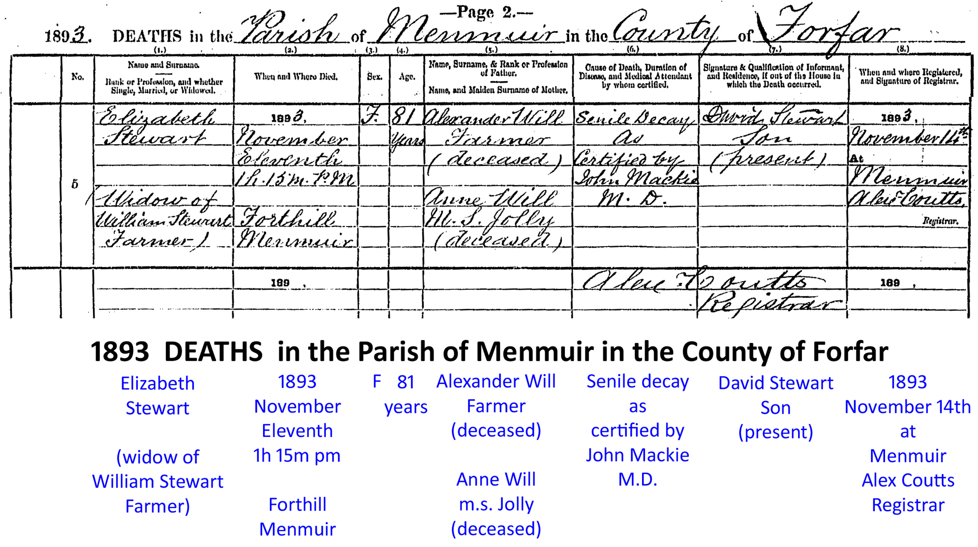 11 November 1893 - Forthill, Angus, Scotland