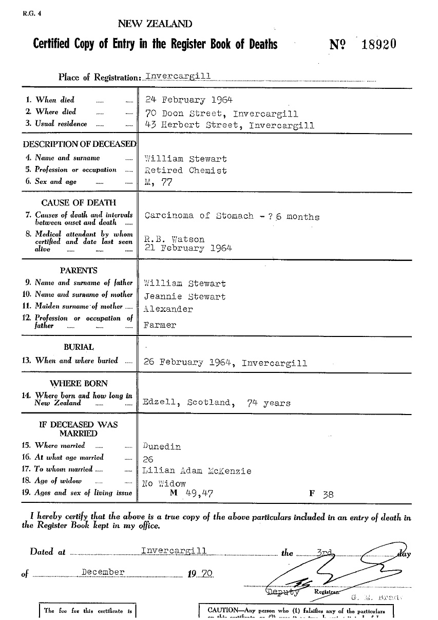 Muuray Alexander STEWART (b: 15/3/1914; d: 13/11/1988)